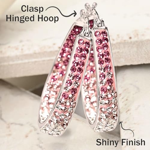 • SETTING & CLASP - These unique hoop earrings feature a set of prongs that securely hold the crystal stones in place. The inside-out setting of the stones adds a dynamic and visually appealing touch to these pink crystal earrings. They come with a hinge & notched post-back findings that ensure a secure fit.
