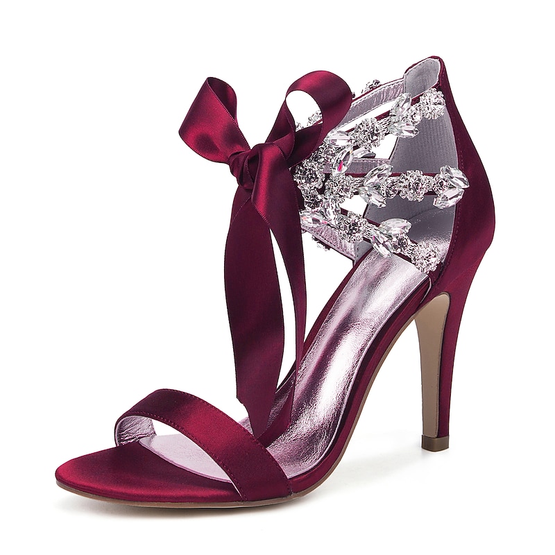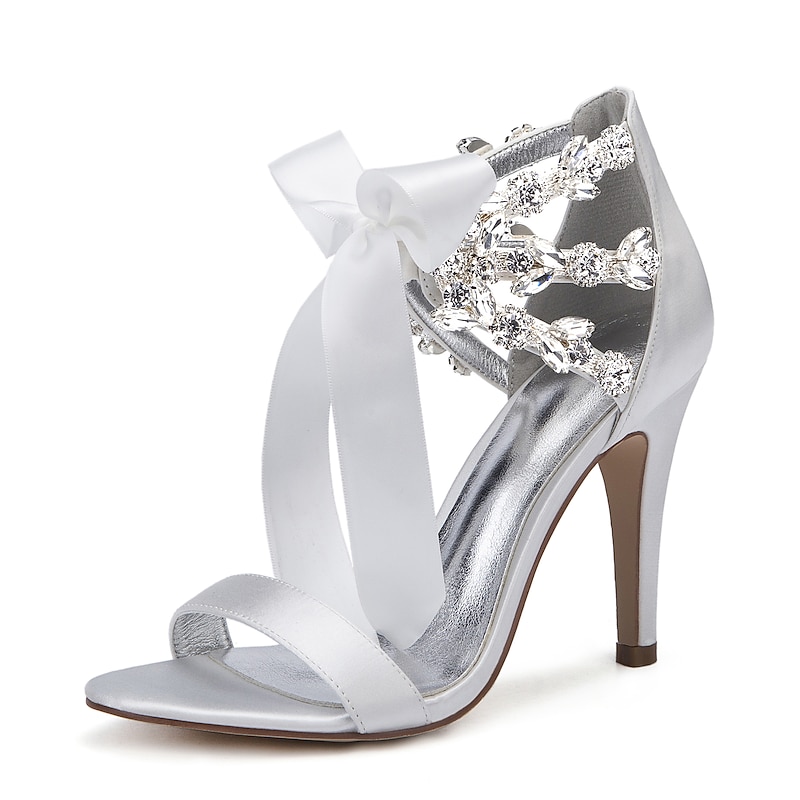 Highlights [Fabric] Expertly crafted from luxurious satin, these women's high heel sandals provide a rich, elegant look. The supple fabric ensures a comfortable fit, creating a refined finish perfect for upscale events. [Silhouette] Featuring a sleek, open-toe design with a minimalist single front strap, these sandals offer a sophisticated and modern touch. The slender high heel enhances both height and grace, ideal for creating an elongated silhouette. [Design Highlights] The standout feature of these sandals is the exquisite ankle detailing adorned with sparkling rhinestones, exuding glamour and sophistication. A satin ribbon elegantly wraps around the ankle, culminating in a chic bow that amplifies femininity and style. [Occasions] These satin high heel sandals are perfect for weddings, formal gatherings, evening events, and other special occasions. Whether dressing up for an elegant wedding or attending a sophisticated evening soirée, these shoes add a touch of luxury to any ensemble. [Size Options] Available in a wide size range to ensure a perfect fit, these sandals accommodate various preferences. Sizes range from US5.5 (EU36) to US10.5 (EU42), offering versatile options for different foot sizes.