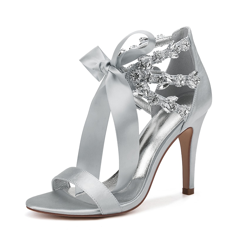 Women's Royal Blue Satin High Heel Sandals – Rhinestone Embellished with Bow Tie Design for Weddings or Formal Events 20