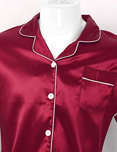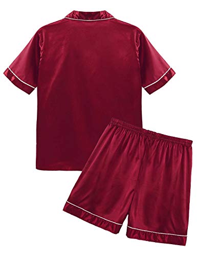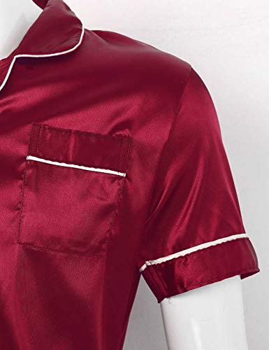 HOT ! iiniim Men's Short Sleeve Satin Pajama Set with Shorts Classic Sleepwear Loungewear Burgundy X-Large