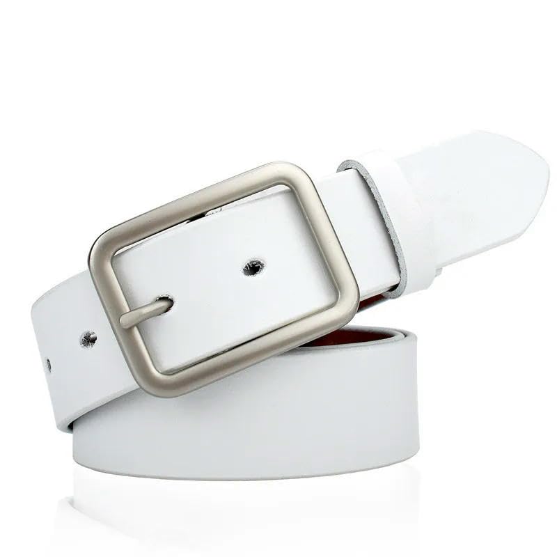 Women White Black Retro Casual Fashion Trendy Metal Square Pin Buckle Leather Belt For Jeans 4