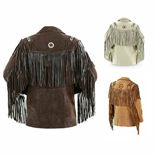 • 【WESTERN FRINGE JACKETS FOR MEN】Excellent Cowboy western bones and beads coat is for western style leather-wear jacket for complete cowboy look. Excellent Fringe work on the coat the jacket is made of top-quality suede leather