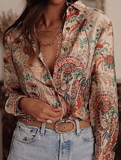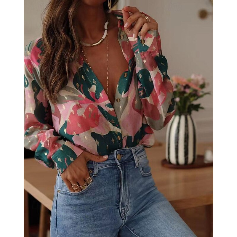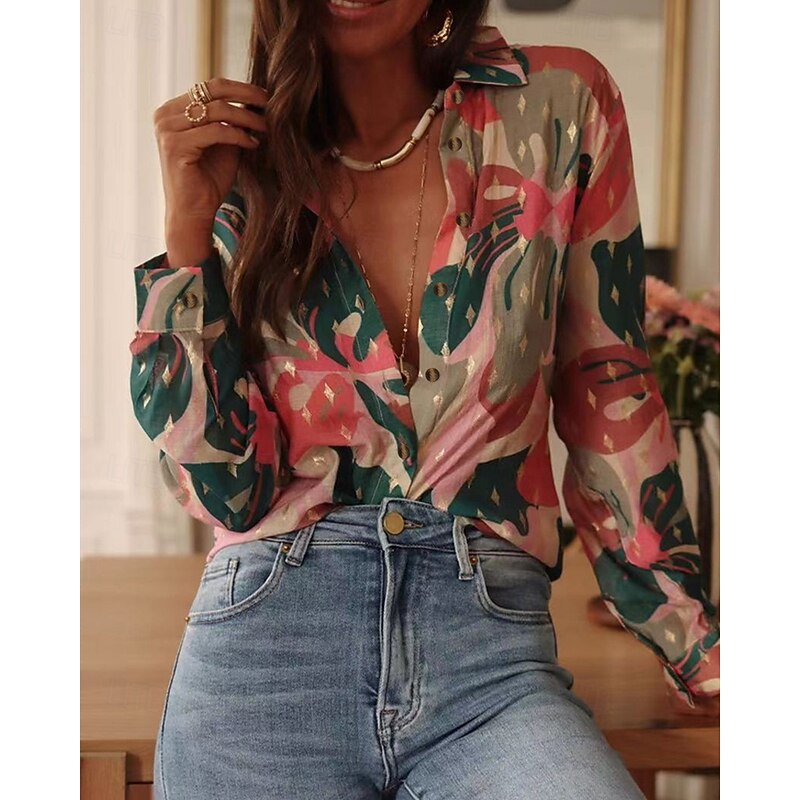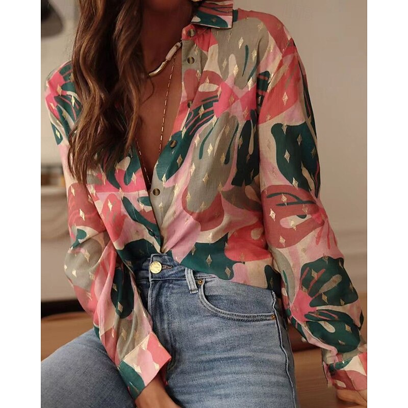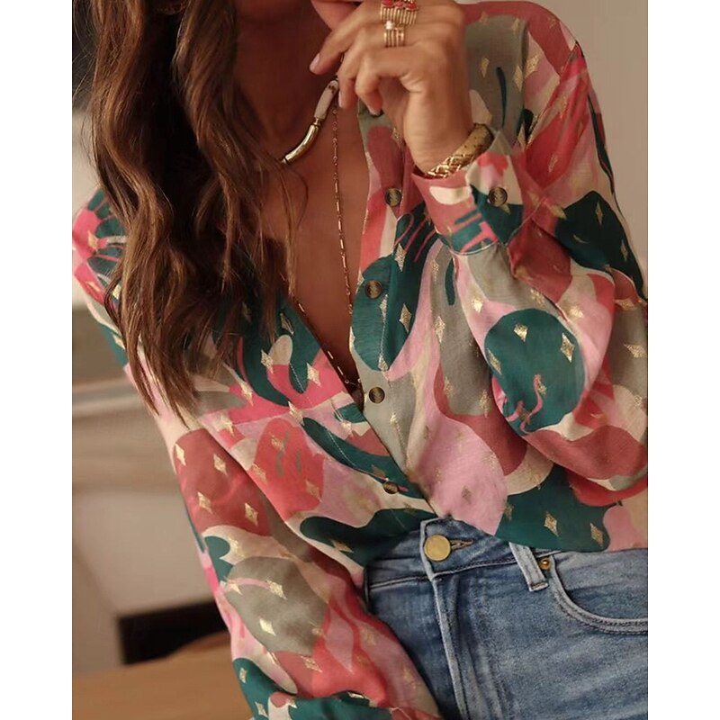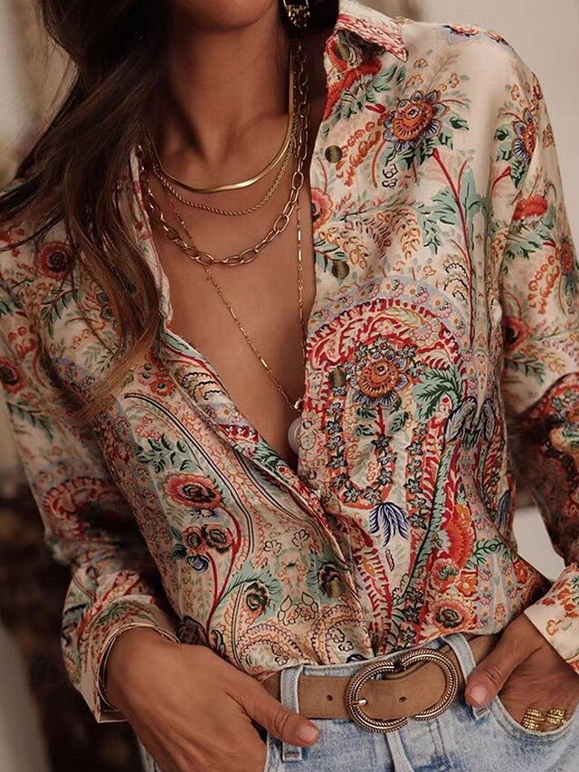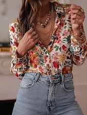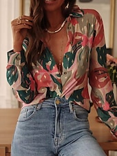 More information about Women's Shirt Floral Bohemia Stylish Modern Long Sleeve Shirt Collar Regular Tops Daily Holiday Pocket Buttons Print Pink Red Orange Green Spring Fall
