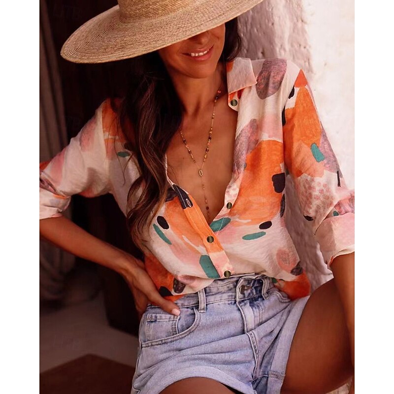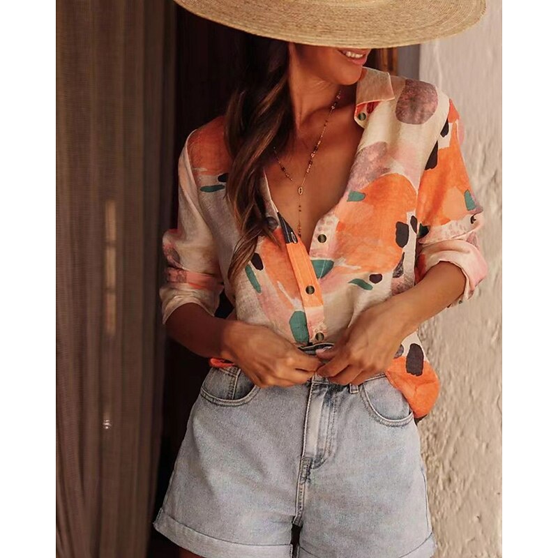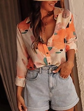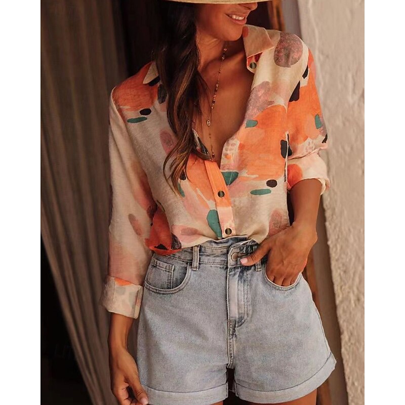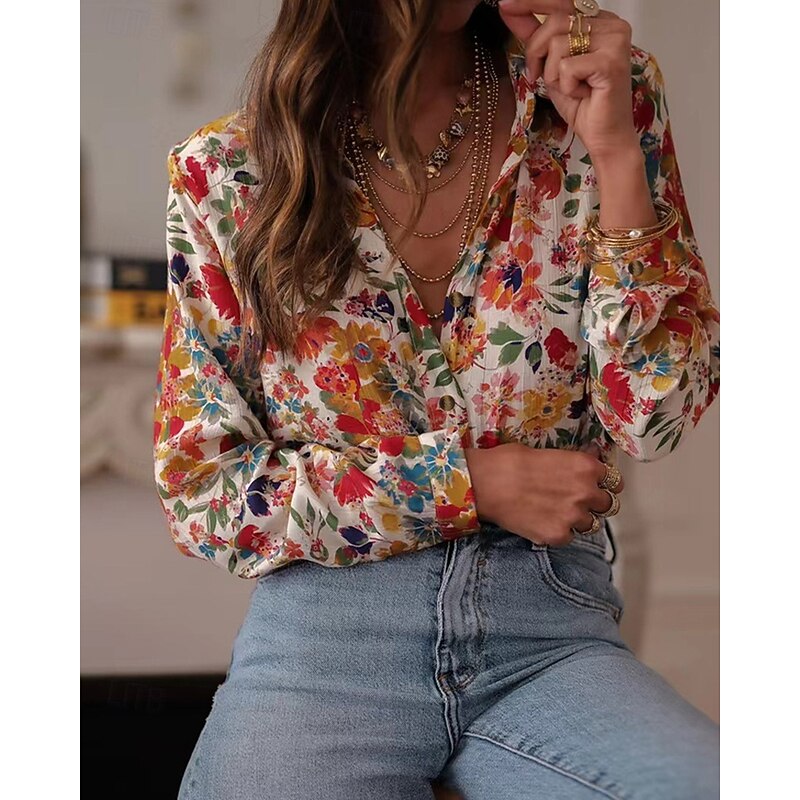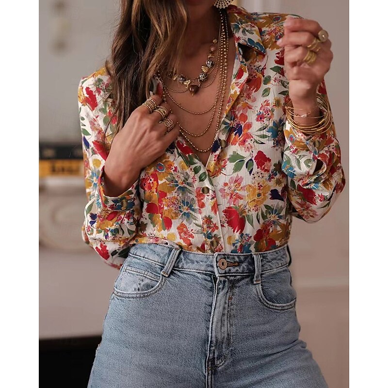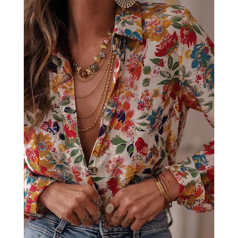 More information about Women's Shirt Floral Bohemia Stylish Modern Long Sleeve Shirt Collar Regular Tops Daily Holiday Pocket Buttons Print Pink Red Orange Green Spring Fall