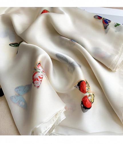 70x35inch Women Silk Feeling Head Hair Satin Scarf Wrapping Long Summer Fashion Lightweight Shawl Travel Beach Airplane (BB beige butterfly) 5
