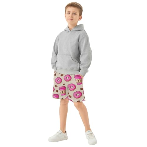 J JOYSAY Donut Coffee Bean Beige Boys Athletic Shorts Kids Youth Casual Shotrs with Pockets Elastic Waistband 7