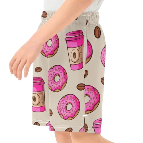 J JOYSAY Donut Coffee Bean Beige Boys Athletic Shorts Kids Youth Casual Shotrs with Pockets Elastic Waistband 6