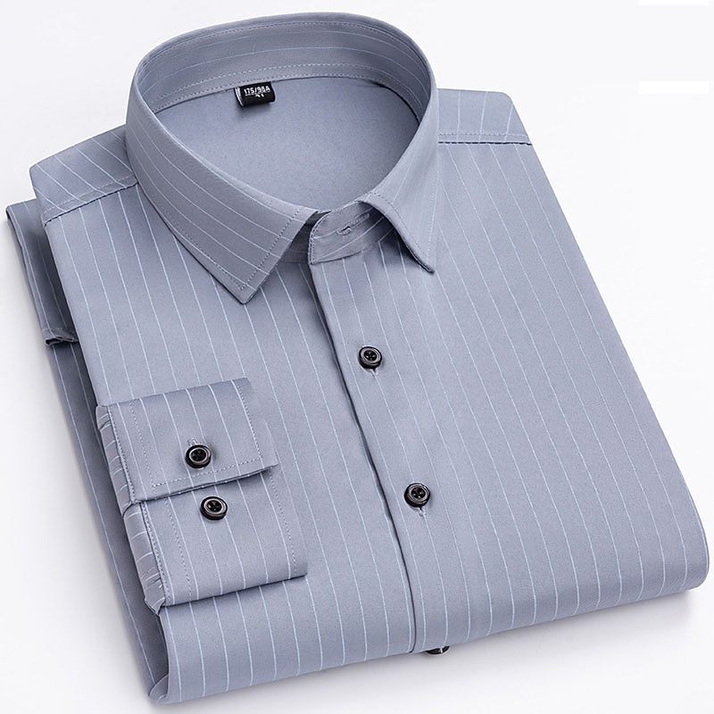 HOT ! Men's Dress Shirt Non Iron Shirt Stripes and Plaid Wedding Office & Career Black White Light Green Wine Long Sleeve Turndown All Seasons Clothing Apparel