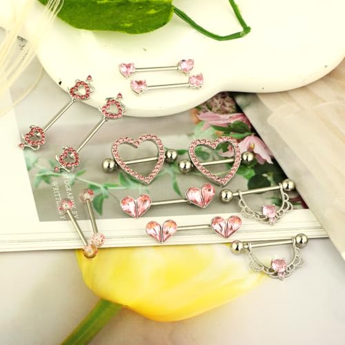 • UNIQUE DESIGN: The Barbell Nipple Ring is Beautiful in Design and Easy to Wear with Double-ended Screw, just twist the ball; Screw out one Ball and Take the Bar out from the Heart, then Put the Bar though your Piercing, Finally Screw on the Ball, Smooth Surface and Edges without Scratching, no Hurt to your Skin, Easy for you to