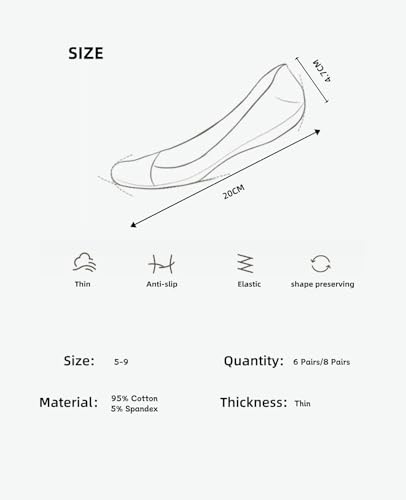 • The color is in line with the summer color, there are six colors to choose from, and the solid color design is also convenient to match. The size of socks is 5-9.These low-profile socks work well with a variety of low cut shoes including sneakers, booties, tennis, running, and boating shoes.