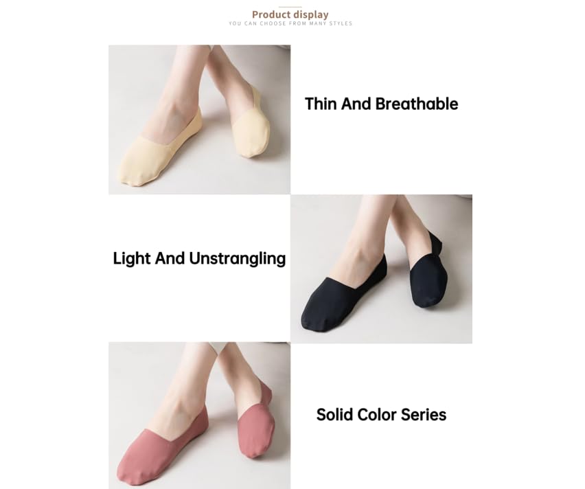 • Shallow mouth invisible socks, easy to match a variety of shoe types of comfortable experience, locking design, the heel added silicone anti-slip, to prevent falling off. It's light and easy on the feet. It fits into the heel. The traceless sticker has anti-allergy treatment to ensure health and safety.