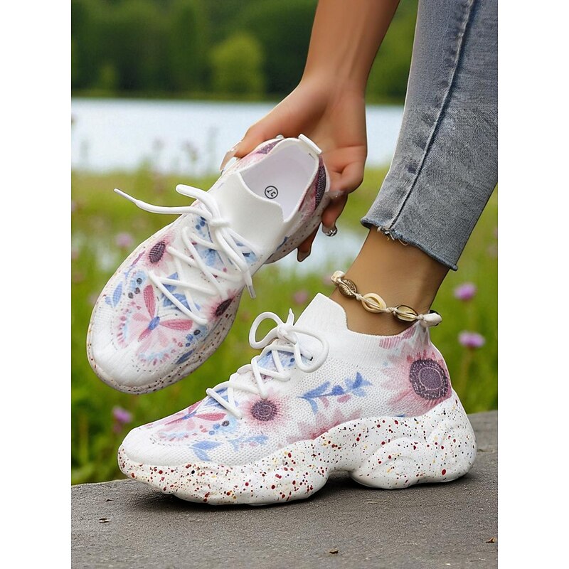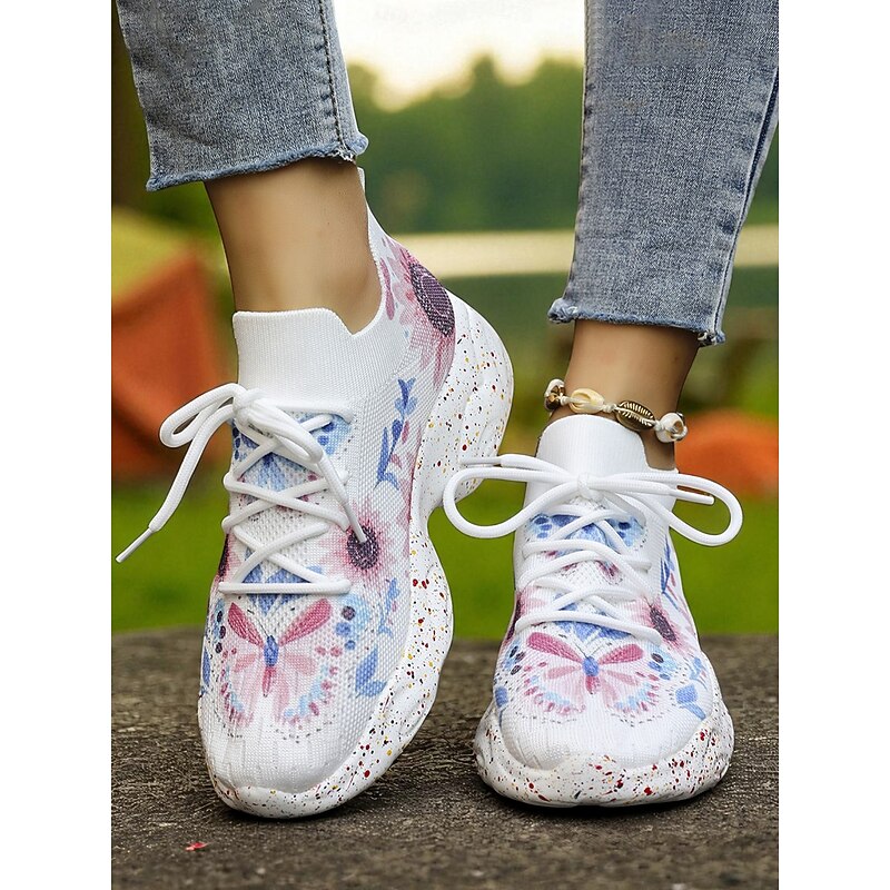 Why Choose Women's Floral Flyknit Sneakers with Butterfly Print – Lightweight Breathable Casual Shoes for Gardening, Walks, Running and Fitness?