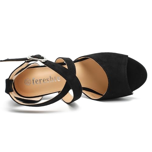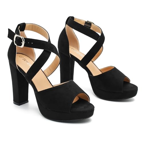 HOT ! fereshte Women's High Heel Sandals Platform Block Chunky Heels Crisscross Ankle Strap Open Toe Comfortable Dress Shoes
