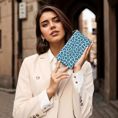 HOT ! Blue leopard print Wallet Women Men, Long PU Leather Wallets for Women, Cute Womens Travel Wallet Purse Pouch with Zipper Pocket