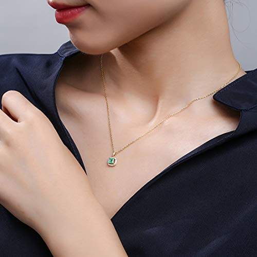 Carleen 14K Solid Yellow Gold May Birthstone 0.38CT Square Green Emerald 0.1CTTW White Diamond Small Dainty Multi-Gemstone Halo Pendant Necklace Fine Jewelry Valentines Day Gifts for Women, 18 Inch 6