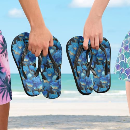 Flip Flop Sandals Elegant Blue Floral Print for Women Men Beach Outdoor XS 5