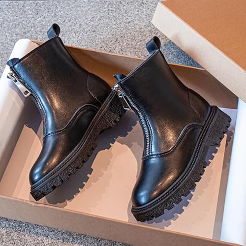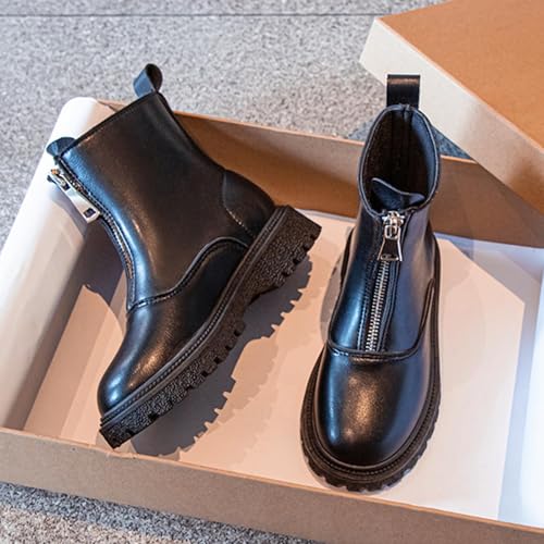 More information about Girls Chelsea Boots Zipper Ankle Booties Waterproof Leather Round Toe Casual Fashion Outdoor Shoes