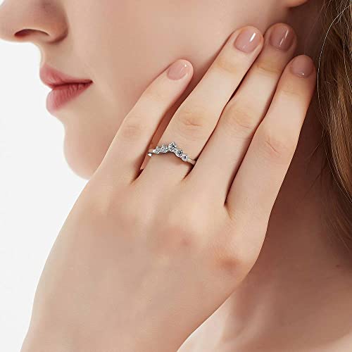 • 925 Sterling Silver: This 5-stone wishbone wedding curved band is crafted with fine solid sterling silver, stamped 925. Rhodium plated for enhanced durability and tarnish resistance.