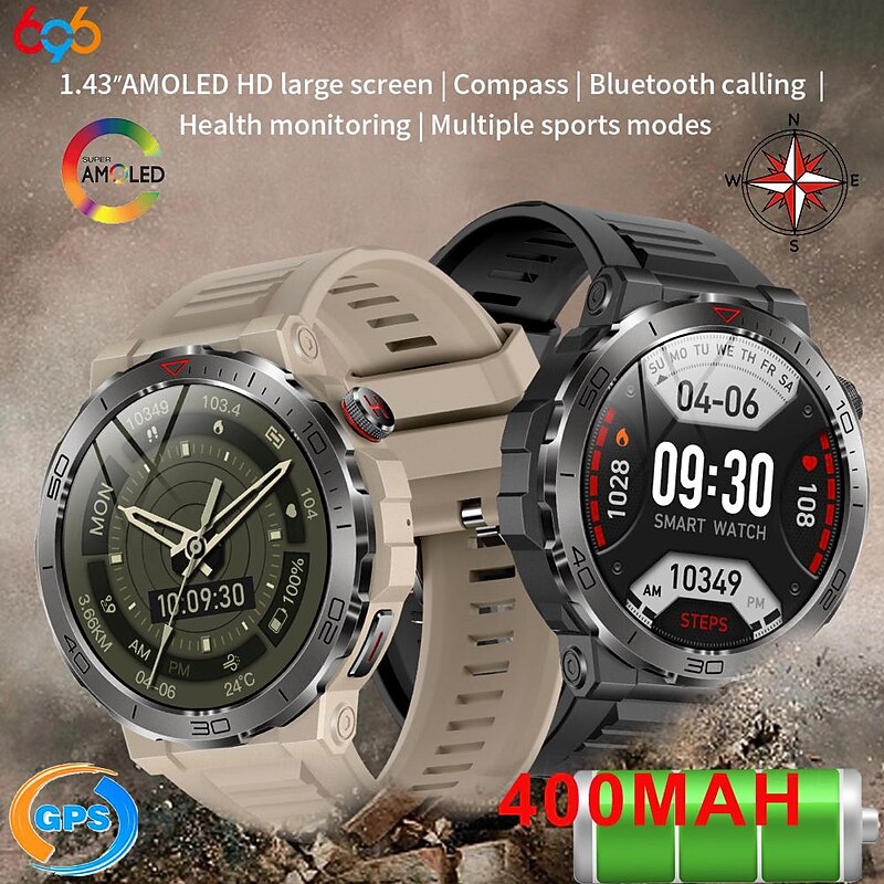 HOT ! 696 MK68 Smart Watch 1.43 inch Smartwatch Fitness Running Watch Bluetooth Pedometer Call Reminder Sleep Tracker Compatible with Android iOS Men Hands-Free Calls Message Reminder IPX-0 47mm Watch Case
