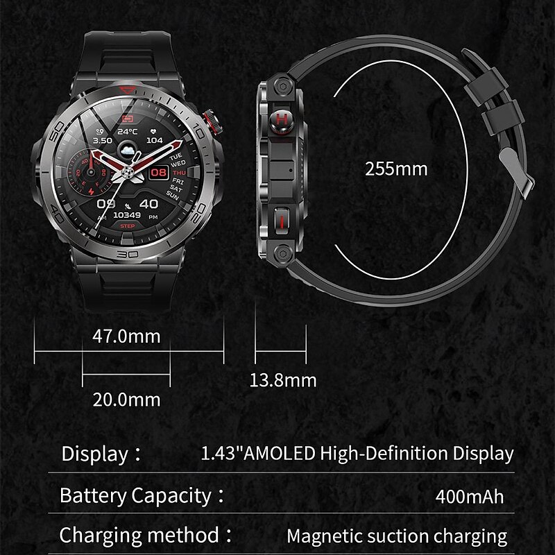 More information about 696 MK68 Smart Watch 1.43 inch Smartwatch Fitness Running Watch Bluetooth Pedometer Call Reminder Sleep Tracker Compatible with Android iOS Men Hands-Free Calls Message Reminder IPX-0 47mm Watch Case