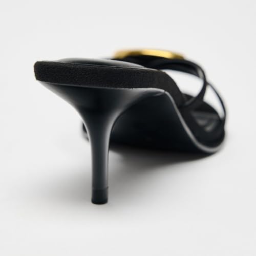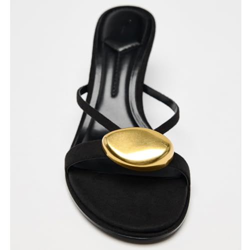 Womens Kitten Heels Mules Sandals Round Open Toe Slip On