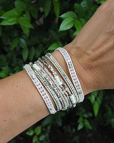Bracelet for Women – Handmade Vegan Boho Natural Stone Layered Bracelet, Thailand Bohemian Stackable Beaded Wrap Bracelets, Summer Hippie Bracelet Stack, Fashion Jewelry Gifts