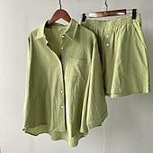 More information about Women's Vacation Fashion Shirt Linen-Inspired Sets Two Piece Sets Beach Shorts Baggy Shorts Short Sleeve Shirt Collar Solid Color Drawstring Daily Wear Date Pink Green Gray Summer Regular Fit