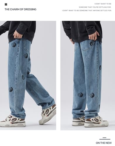 Jeans Pants Trousers Denim Spring and Autumn Printed Straight Leg Men's High Street Youth Versatile End 5