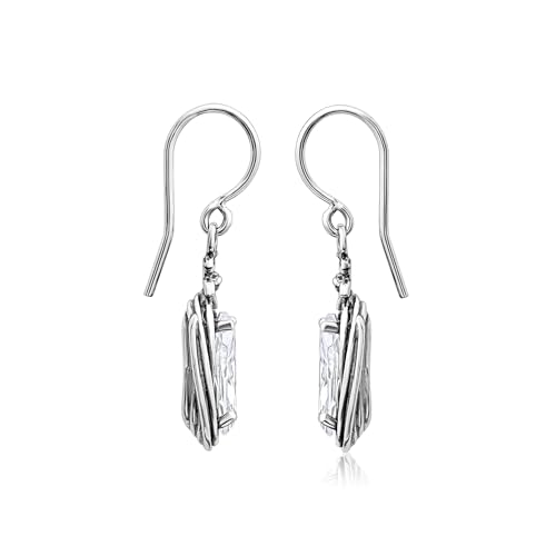 HOT ! Jean Rachel Jewelry 925 Sterling Silver Dangle Earrings for Women - Floral Wire Wrap with Cubic Zirconia Vintage Design - Hypoallergenic, Lead & Nickel Free - Handcrafted Statement Earrings