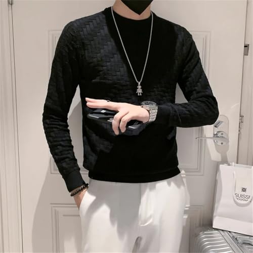 Men's Long Sleeve Round Neck Knitted Pullovers Plaid Warm Knitwear Tops Sweater 3