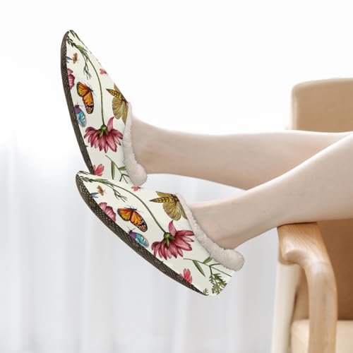More information about Vintage Spring Flower Dragonfly Butterfly Slippers for Women Slipper Socks Soft Fuzzy House Slippers Shoes for Indoor Bedroom, Winter Cozy Christmas Gifts