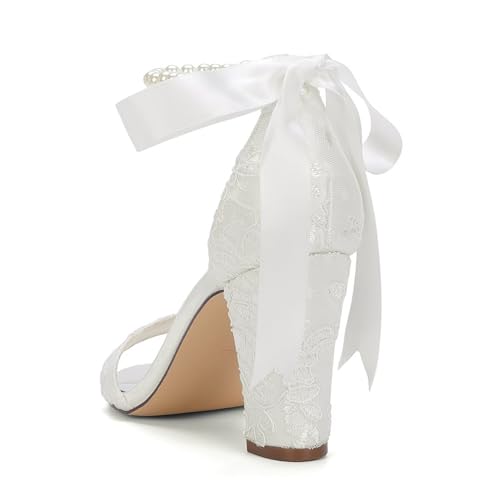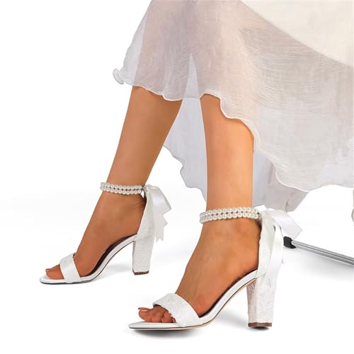 High Block Heel Wedding Sandals Open Toe Wedding Shoes for Bride Pearl Bridal Heels 6