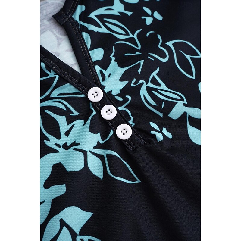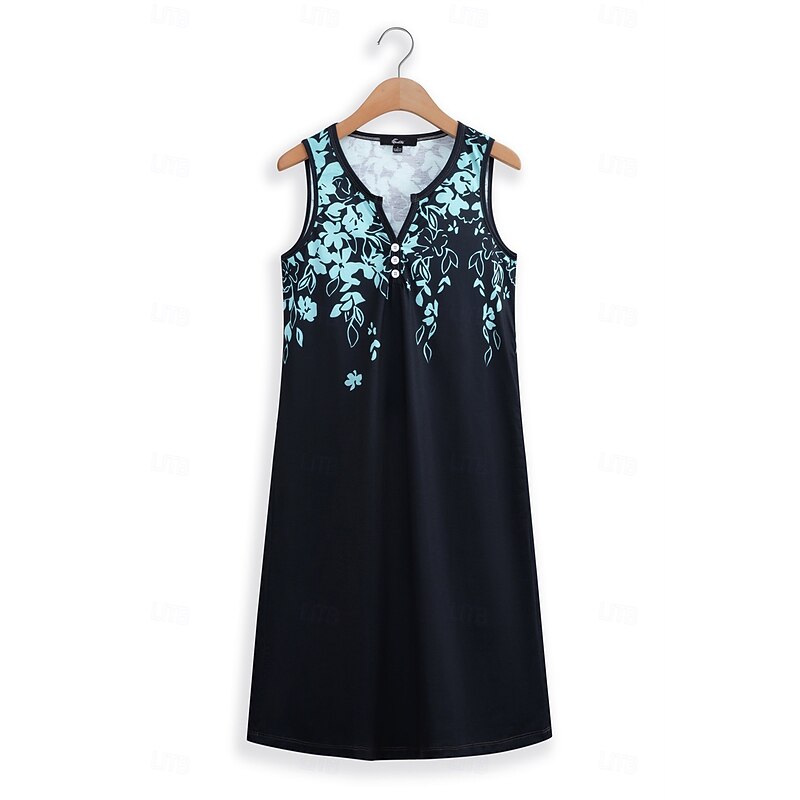 Highlights [Fabric] : Crafted from a lightweight polyester, this Women's Tank Dress offers a perfect blend of comfort and style. The addition of cotton spandex jersey ensures a soft touch with a hint of stretch for a comfortable fit all day long. [Silhouette] : Featuring an A-line silhouette, this dress gently flares from the waist, providing a flattering fit for various body types. Its mini length adds a youthful and playful vibe, making it suitable for both casual outings and more dressed-up occasions. [Design Highlights] : The dress showcases an eye-catching floral and leaf print, bringing a splash of color and elegance to the black base. The split neckline with button details adds a touch of sophistication and modernity to the design, making it a versatile piece that can transition from day to night effortlessly. [Occasions] : Ideal for spring and summer seasons, this dress is perfect for vacations, outdoor activities, streetwear, or casual daily wear. Its active and fashionable style allows it to be dressed up with accessories or kept casual with sandals or sneakers. [Size Range] : Available in sizes S, M, L, XL, and XXL, this dress ensures a perfect fit for a wide range of body shapes, catering to different style preferences and ensuring comfort for any occasion.