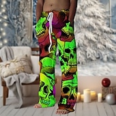 HOT ! Men's Skulls Pants Trousers Mid Waist Drawstring Elastic Waist Casual Horror Outdoor Party Evening Wear Holiday Straight Leg Trousers Summer Spring Fall 3D Print Red Purple Green