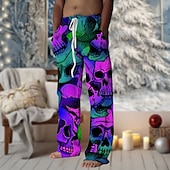 More information about Men's Skulls Pants Trousers Mid Waist Drawstring Elastic Waist Casual Horror Outdoor Party Evening Wear Holiday Straight Leg Trousers Summer Spring Fall 3D Print Red Purple Green