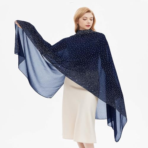 • ✧ SPARKLLY, STURDY, DURABLE MATERIAL AND PERFECT SIZE: The chiffon shawls and wraps for evening dresses are made of sturdy sparkly rhinestones and durable chiffon. The rhinestones sparkle beautifully, it reflects the light very well to make the wraps so charming. And the chiffon is soft, skin-friendly and durable. Dressy shawls for evening wear is generous in size 80" x 27.5" and 6.5 oz, enough to cover the most ample-sized body.