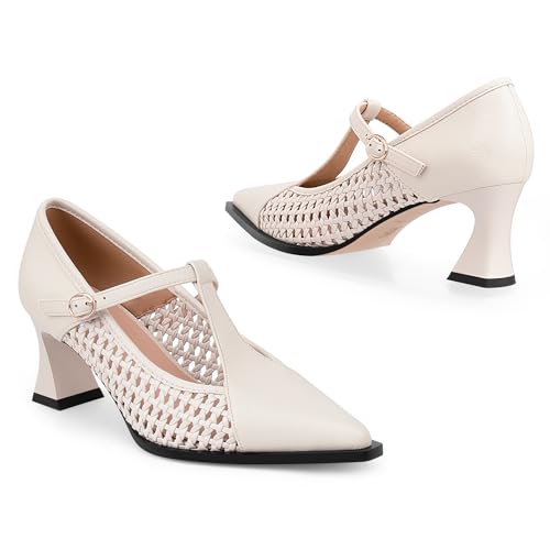 More information about Women's Woven Mary Jane Pumps T-Strap Pointed Toe Mid Block Heel Vintage Office Wedding Casual Dress Shoes