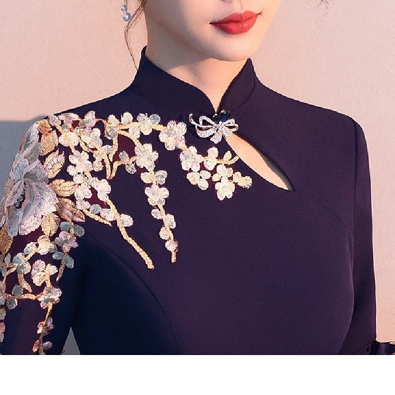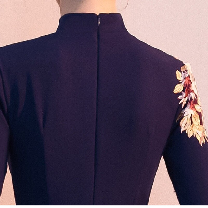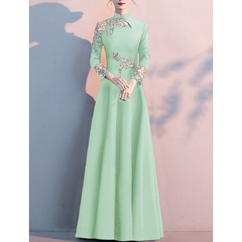 More information about A-Line Mother of the Bride Dress Elegant Simple High Neck Floor Length Stretch Fabric Long Sleeve with Pleats Appliques free custom size