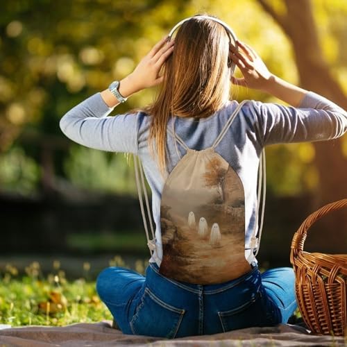 Classic Ghosts in The Countryside Vintage Rustic Drawstring Backpack Canvas String Bag Lightweight Sports Gym Bag for Men Women 5