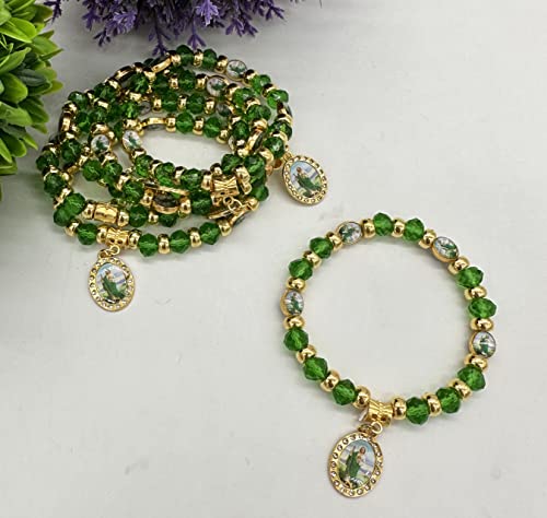 More information about RBN Saint Jude Crystal Green Stone Bracelet Pulsera De San Judas Tadeo Prosperidad Proteccion Y Buena Suerte Baptism Beaded Bracelets - 12 PCS