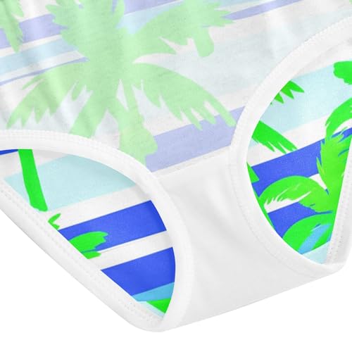 Green Palm Trees Blue Striped Little Girl Panties Toddlers Underwear Floral Cotton Fancy Briefs Girls Undies 2t 5