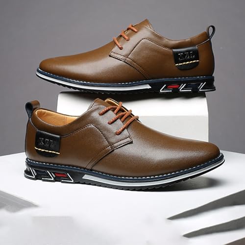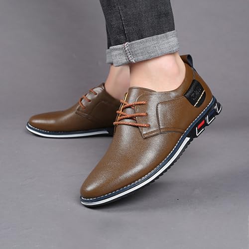 Men's Leather Lace Up Flats Dress Oxfords,Fashion Breathable Slip On Walking Shoes Business Office Party Comfort Loafers
