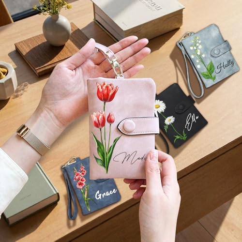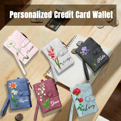 Personalized Wallets for Women,Custom Birthday Flower and Name,With Detachable Wristlet Strap,Gifts for Mother,Girlfriend,Wife on Anniversary,Birthday,Christmas,Thanksgiving,Mother's Day (Style A) 5