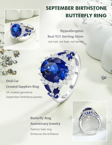 Big Oval Rings for Women Butterfly Promise Halo Ring Sterling Silver Created Sapphire/Ruby/Emerald/Aquamarine Cz Engagement Ring Birthstone Anniversary Jewelry Size 6-10 5