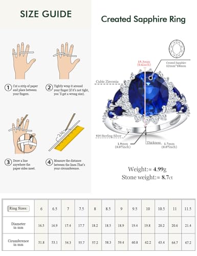 • Sapphire Rings for Women: Sapphire halo ring features a 12×10 mm oval cut created sapphire (September’s birthstone) set in a 4-prong setting in the center, surrounded by a halo of sparkling cubic zirconia for added sparkle. The perfect oval engagement ring for a romantic proposal