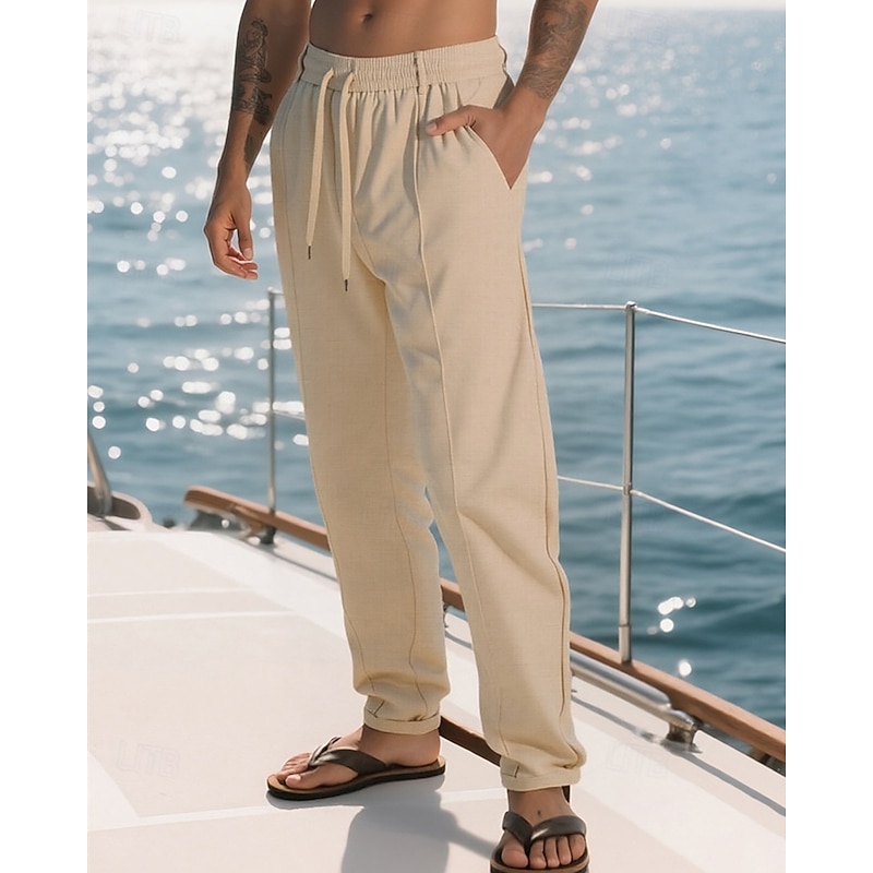 Men's Sweatpants Trousers Pleated Pants Drawstring Pocket Elastic Waist Plain Comfort Sports Outdoor Daily Fashion Casual ArmyGreen Black Micro-elastic 25