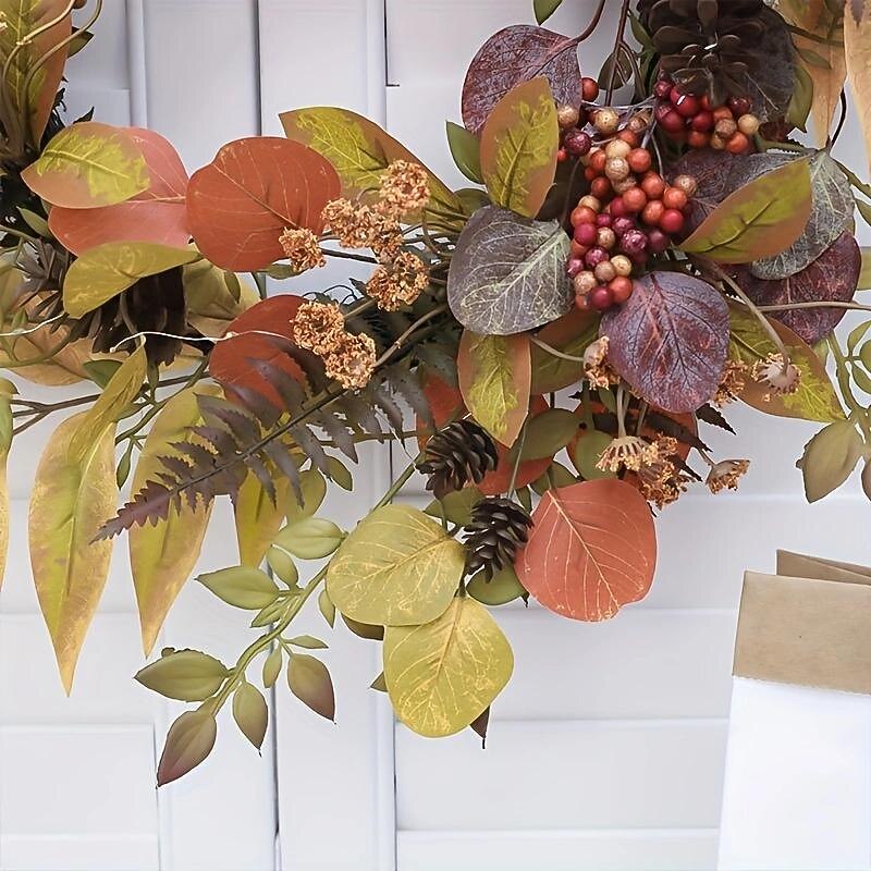 22inch Autumn Artificial Plant LED Light Wreath Home Holiday Outdoor Garden Party Front Door Wall Decoration for Halloween 14