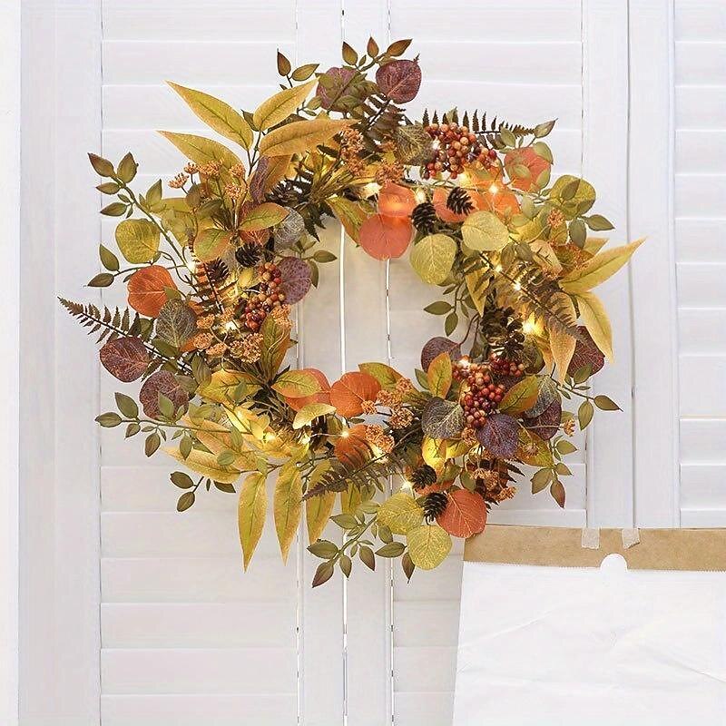 22inch Autumn Artificial Plant LED Light Wreath Home Holiday Outdoor Garden Party Front Door Wall Decoration for Halloween 11