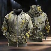 More information about Men's Camo Deer Hoodie Jacket Sweatshirt Fashion Daily Hooded Vacation Hunting Yellow Blue Drawstring Zipper Fall Winter Designer