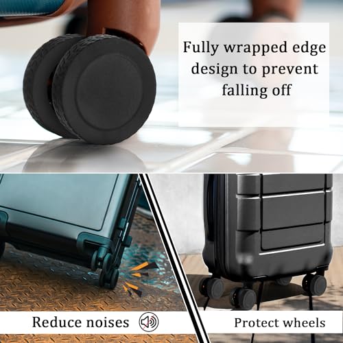 8pcs All-Inclusive Luggage Wheel Covers, 2.05x0.55 Inch Rubber Suitcase Wheel Protector Covers Full Coverage Design Accessories Mute Shockproof for Most 8-Spinner Wheels Suitcase (Black) 2